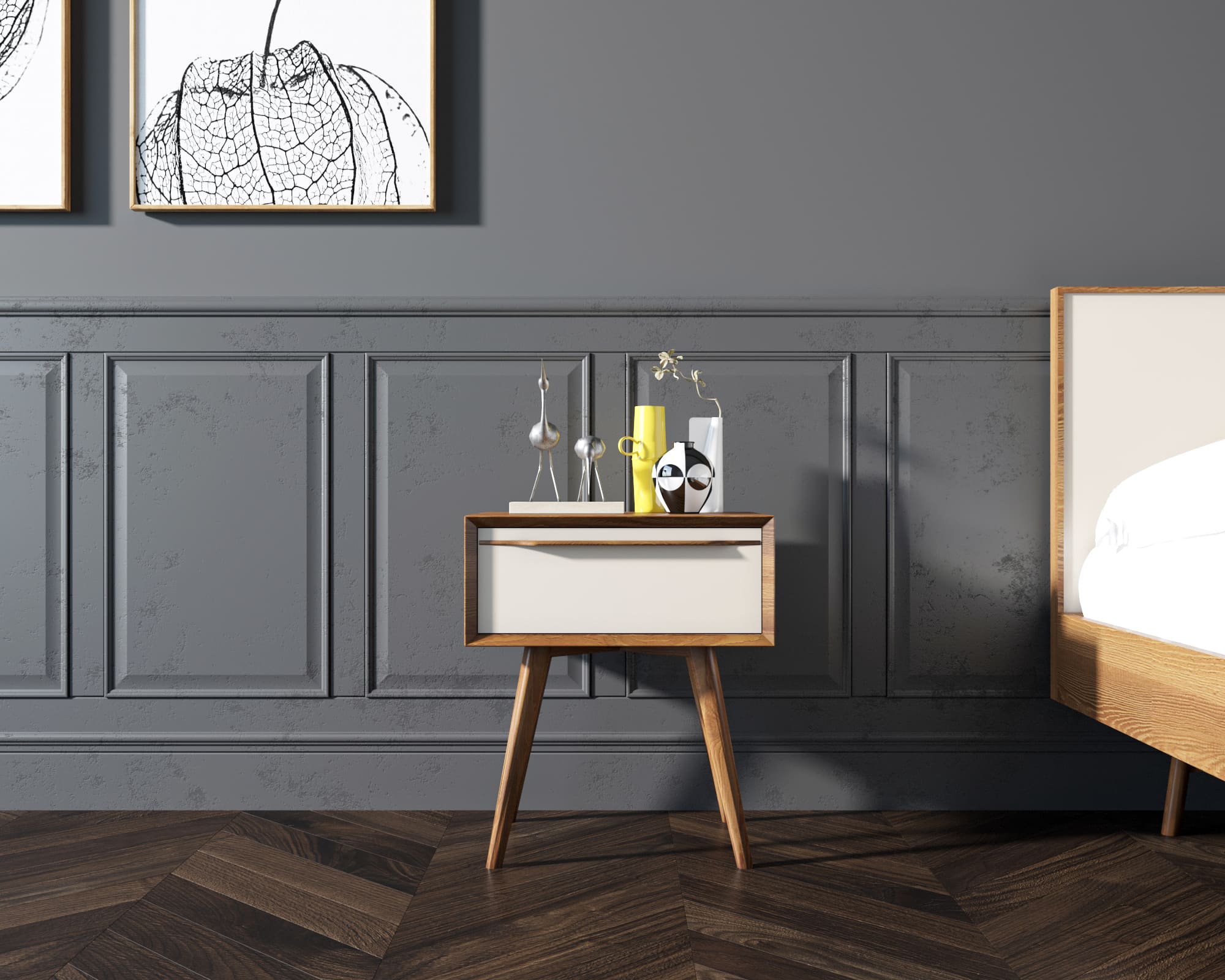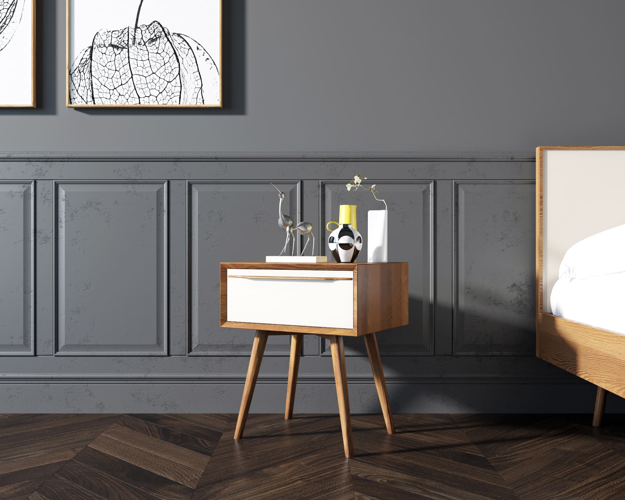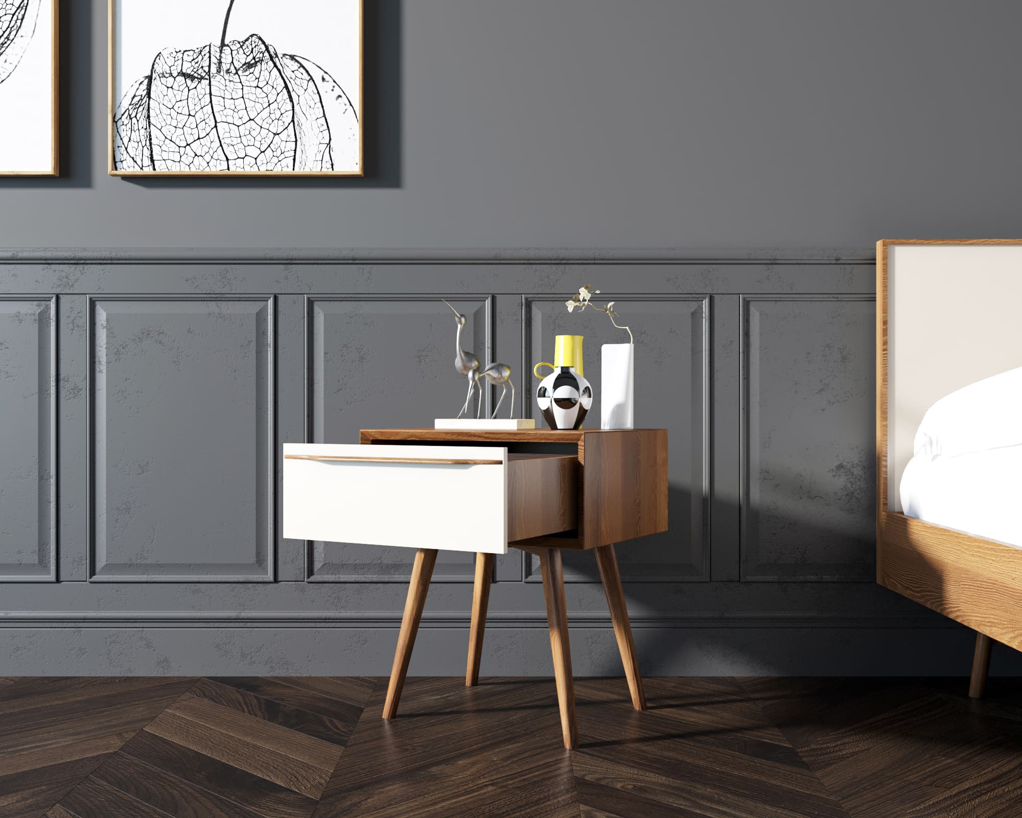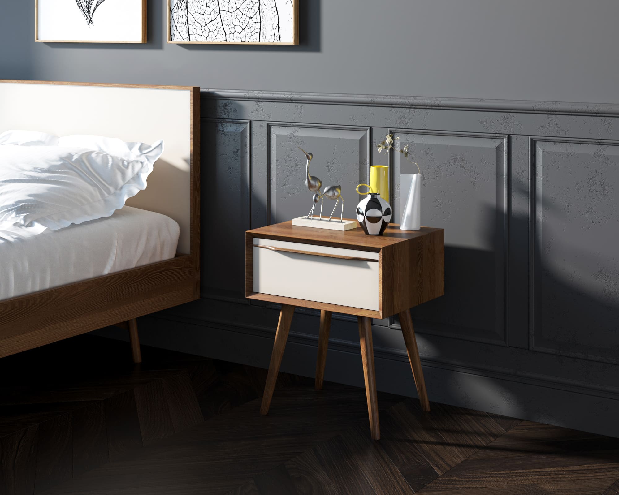Тумба с ящиком из дерева в Скандинавском стиле "Bruni white" с ящиком