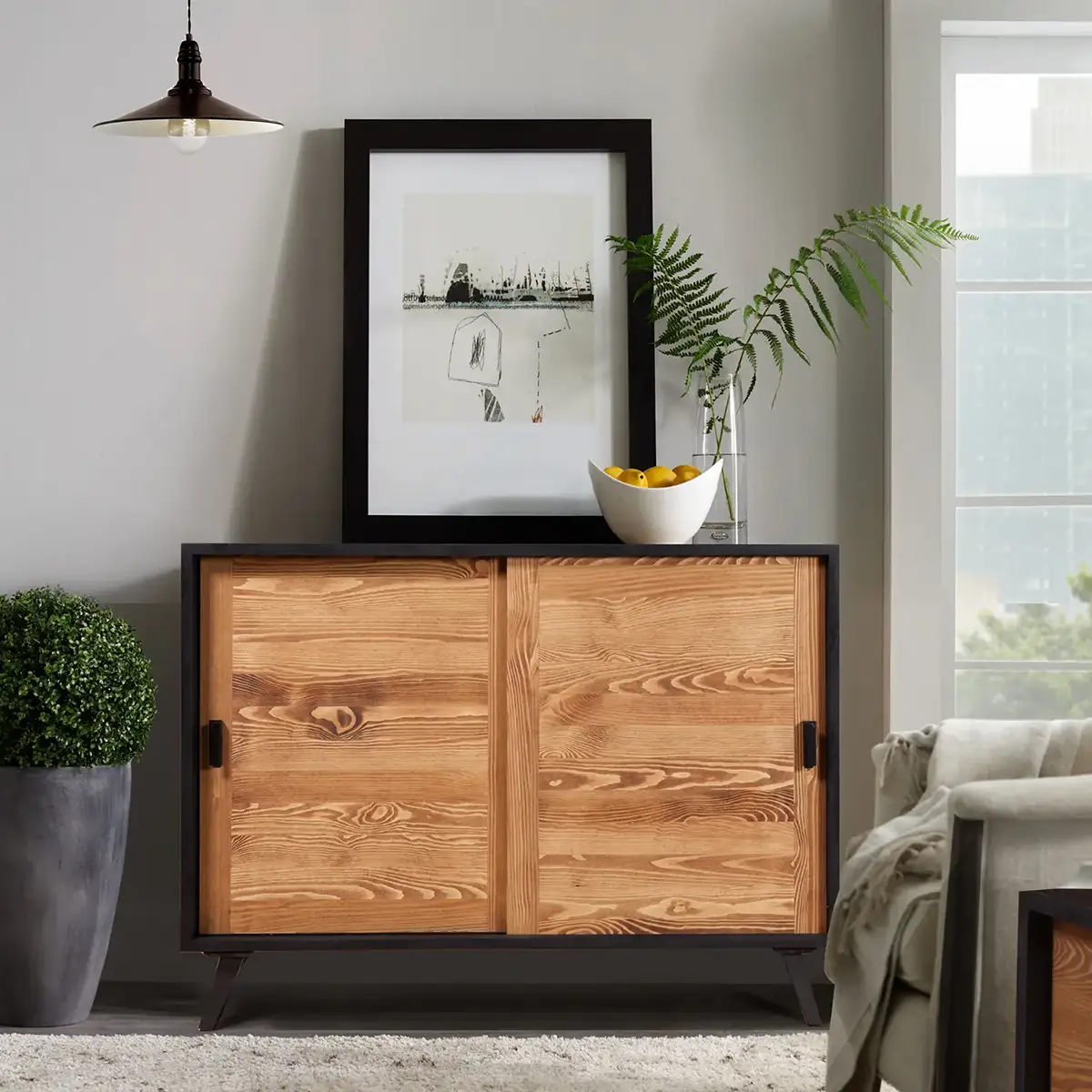 Предметы мебели имеют отделку «старение» с использованием натурального воска, покрываются черным матовым лаком. На фасадах сохранена натуральная древесная текстура. Двери и ящики с удобными металлическими ручками. Дверцы крепятся на европетлях, а выдвижные ящики оснащены шариковыми направляющими.