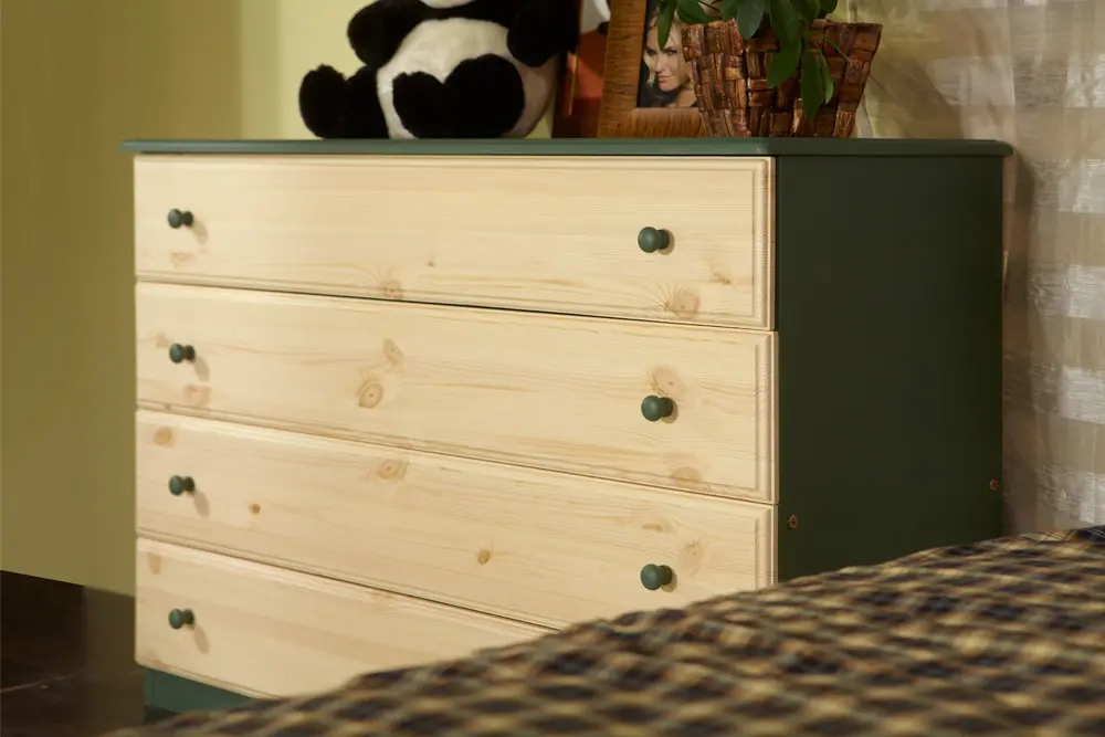 Комод с 4 ящиками из дерева. Цена за комод в бесцветном лаке. Возможны различные варианты тонировки. Стоимость зависит от выбранного покрытия. При заказе мебели в составном цвете цена считается по более дорогому.