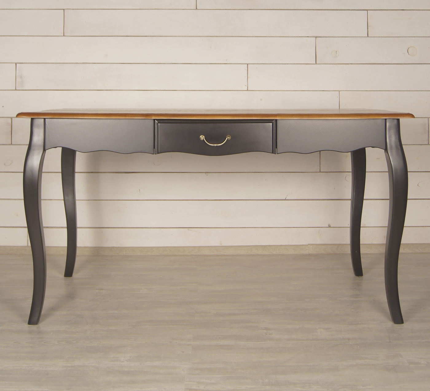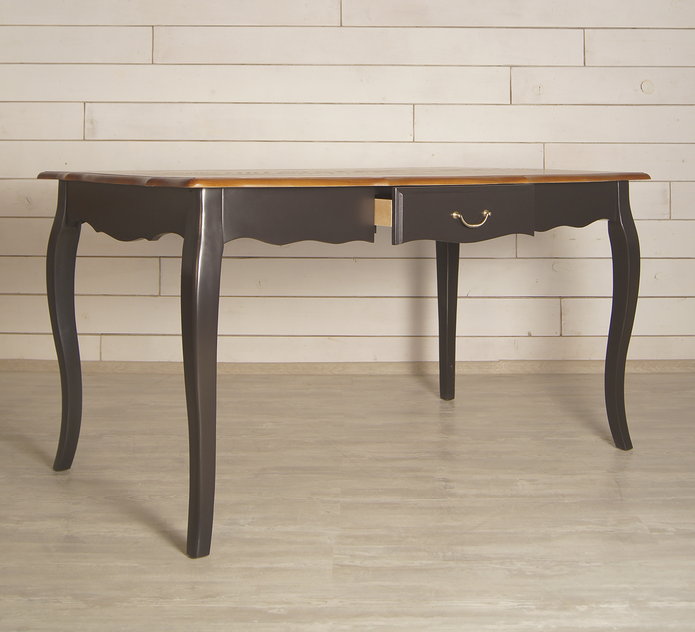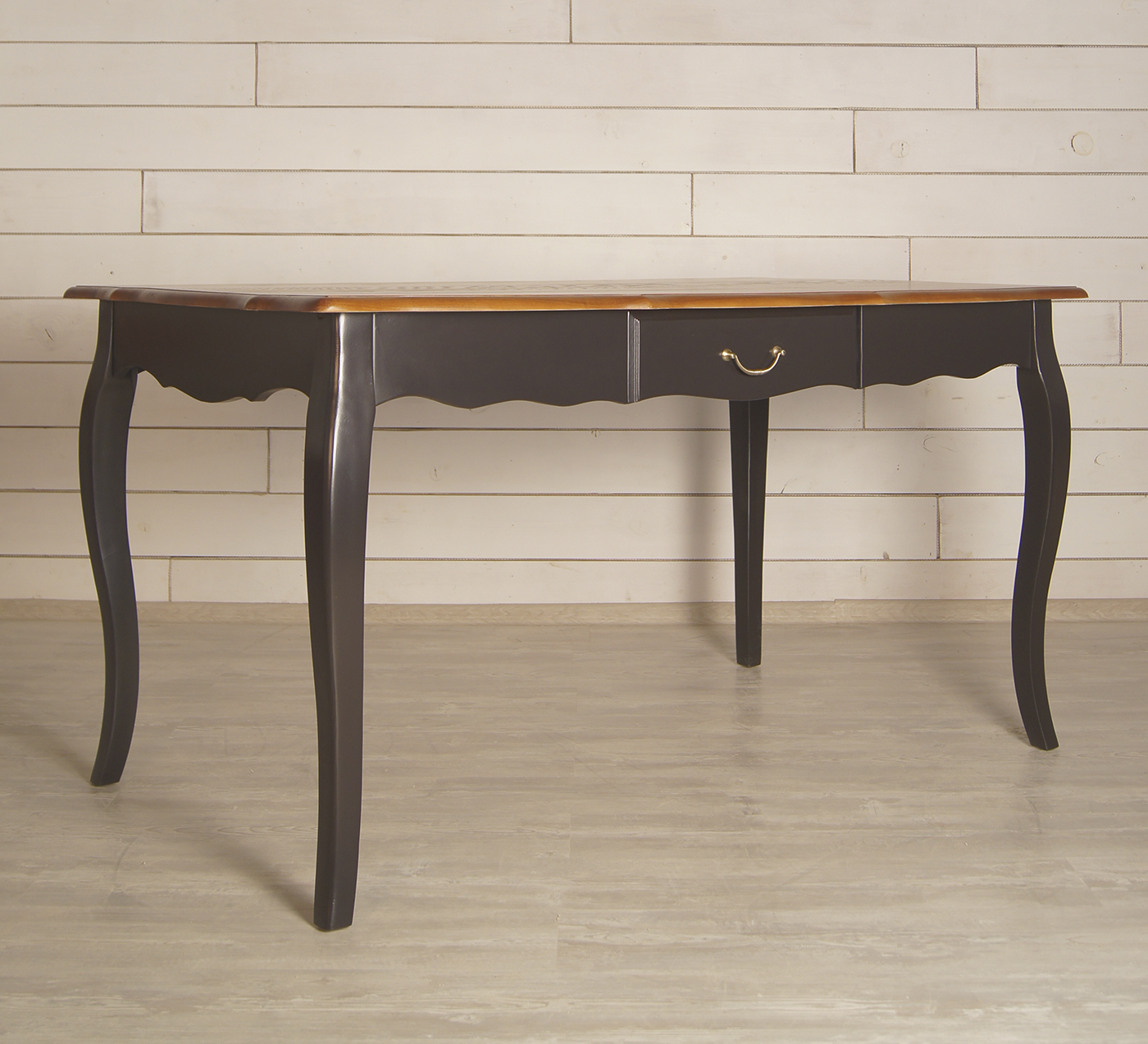 Гнутые ножки кабриоль, фигурная столешница из массива ясеня и глубокий черный солидный цвет