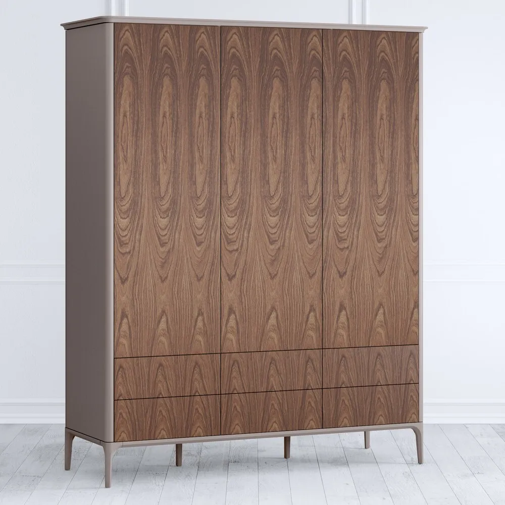 Мебель из коллекции Primo Bosco предназначена для спален, кабинетов, гостиных, включает стеллажи, одежные шкафы с 2, 3 и 4 дверями, стеклянные витрины, столы разных типов (журнальные, письменные, обеденные), прикроватные тумбы и комоды. Предметы коллекции предлагаются в двух цветах, корпуса выкрашены в серый, фасады – в цвет «шпон ореха» с сохранением текстуры дерева.