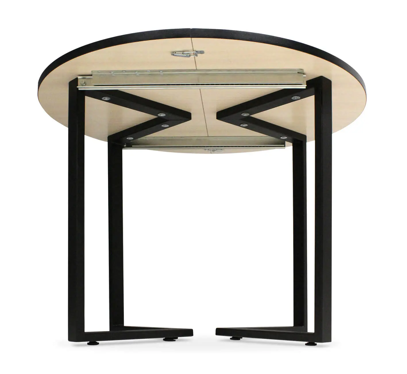 Изделие оснащено простым раздвижным механизмом бесцаргового типа. В собранном виде по центру столешницы имеется стыковочный шов. Выдвижную часть необходимо хранить отдельно. Для того, чтобы разложить стол, нужно: