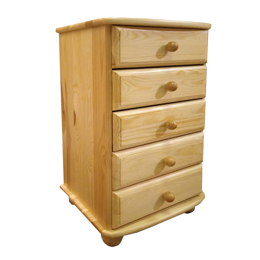 Все лицевые фасады комода, изготовлены из бессучкового массива, путём ручной сортировки сырья. Комод имеет привлекательный и неброский вид, а его классические линии будут уместны как в спальне (прикроватная тумба), детской комнате, так в гостиной и даже в маленькой прихожей. Ящики комода на роликовых направляющих частичного выдвижения (на 22 см.) имеют небольшую глубину, и вы легко найдёте нужную вам вещь. Высота лицевой панели ящика 12,8 см, а высота внутренних боковин ящика 8 см. Дно ящиков изготовлено из ДВП белого цвета. а направляющие выдерживают нагрузку 20 кг. Задняя стенка комода - ДВП серого цвета.
