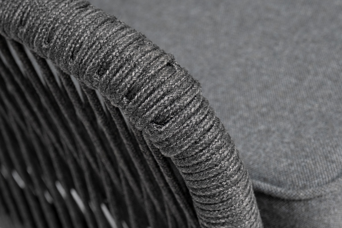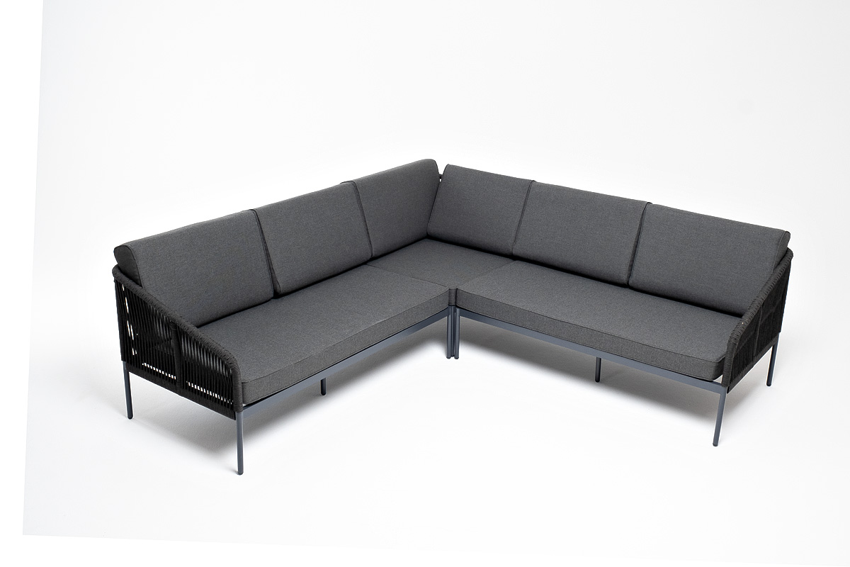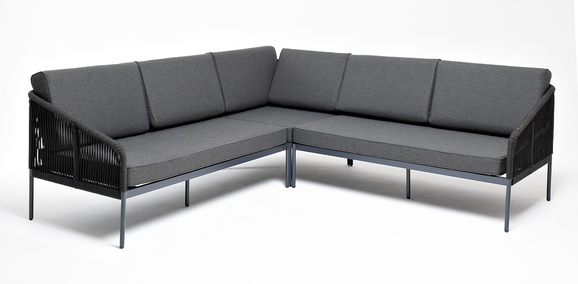 "Каннизо" диван модульный плетеный из роупа, каркас алюминий темно-серый (RAL7024), роуп темно-серый круглый, ткань темно-серая