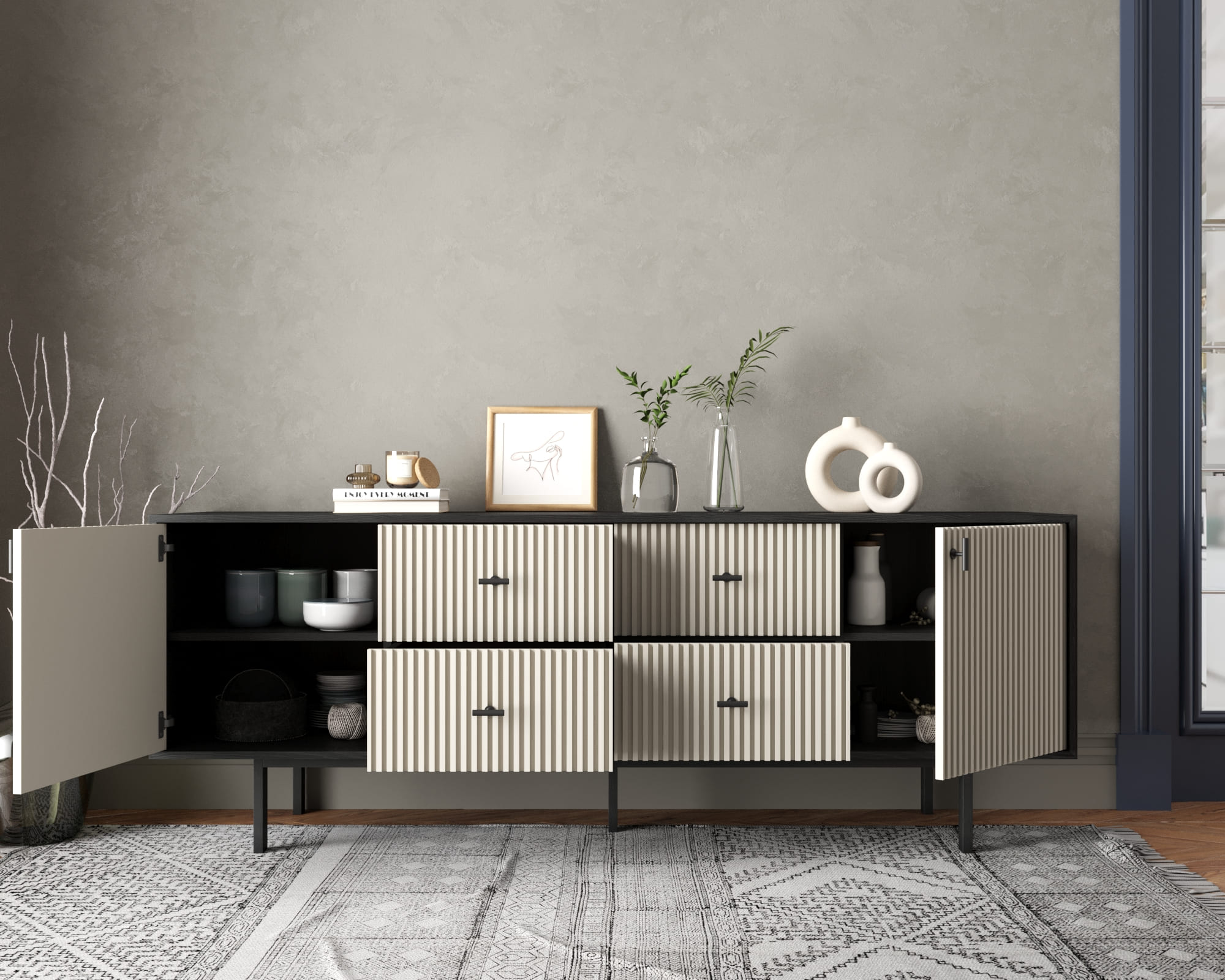Мы предлагаем различные варианты исполнения: с фасадами или с фасадами и ящиками. Петли с доводчиком обеспечивают плавное закрывание дверей, а шариковые направляющие без доводчика позволяют легко выдвигать ящики. Комод поставляется в сборе, что упрощает его установку.