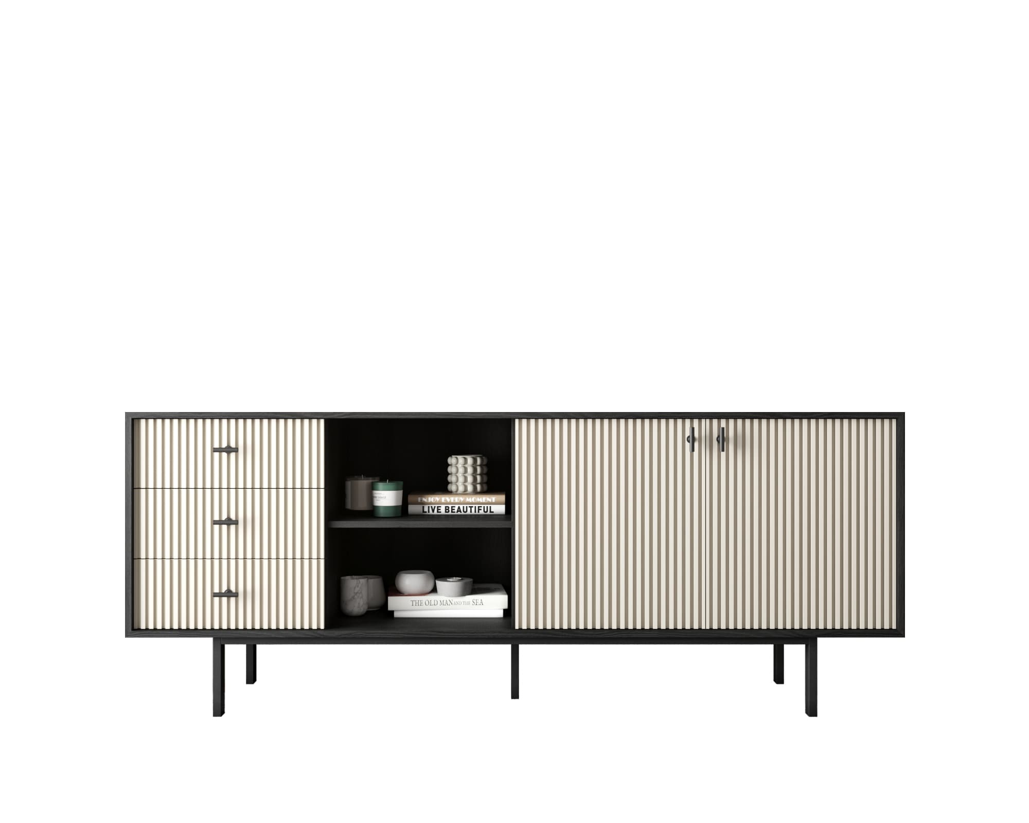 Мы предлагаем различные варианты исполнения: с фасадами или с фасадами и ящиками. Петли с доводчиком обеспечивают плавное закрывание дверей, а шариковые направляющие без доводчика позволяют легко выдвигать ящики. Комод поставляется в сборе, что упрощает его установку.