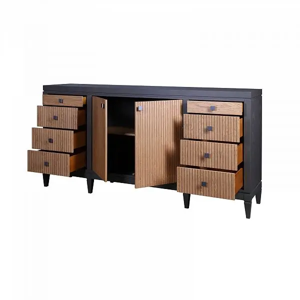 Комод Фокстрот 428A рельеф (бетон-дуб натуральный). Комод состоит из двух распашных дверей с полкой внутри и восьми ящиков. Фурнитура на дверях и ящиках с доводчиками. Высокие ножки обеспечивают оптимальный доступ при уборке. Особенности Размеры 1969 x 1001 x 440 мм; Из массива и шпона дуба; Современная надежная фурнитура из Германии; Изделие представлено в цвете “бетон/дуб натуральный”. Направляющие - GTV скрытого монтажа со встроенным демпфером (доводчиком для плавного закрывания) Петли-GTV Ручки - Citterio Line (Италия) в стиле модерн, имеют форму квадрата, металл, цвет графит; Особенности покрытия Поверхности изделия обработаны лаками и красками, которые выгодно подчеркивают естественную красоту натуральной древесины. Таким образом обеспечивается защита от излишней влаги, появления плесени и грибков.