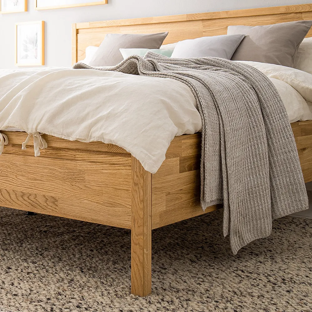 Двуспальная кровать «Ина» — это идеальное сочетание стиля, комфорта и надёжности. Каркас кровати изготовлен из натурального дерева – массива дуба. Одна из особенностей кровати – высокие тонкие ножки. Из шести вариантов отделки можно выбрать тот, который лучше всего подойдёт к вашему интерьеру.
