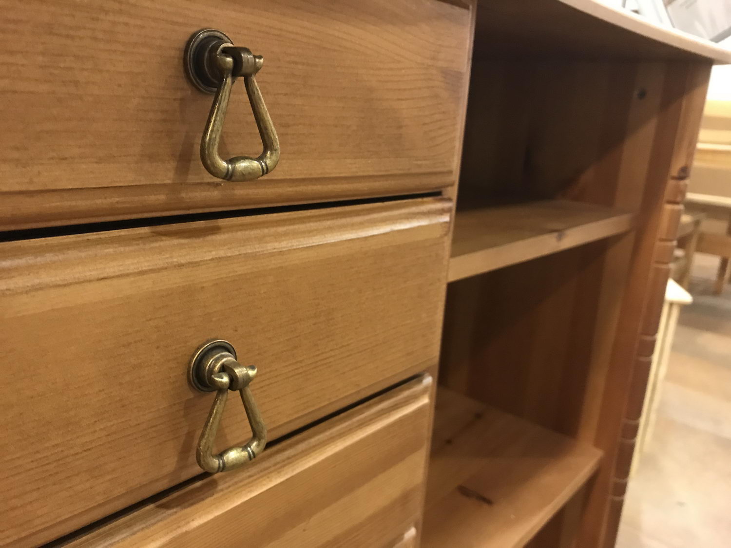 Стеллаж из массива сосны с 4 выдвижными ящиками.