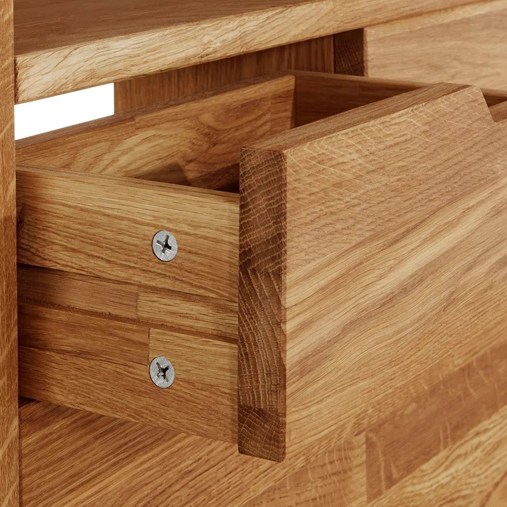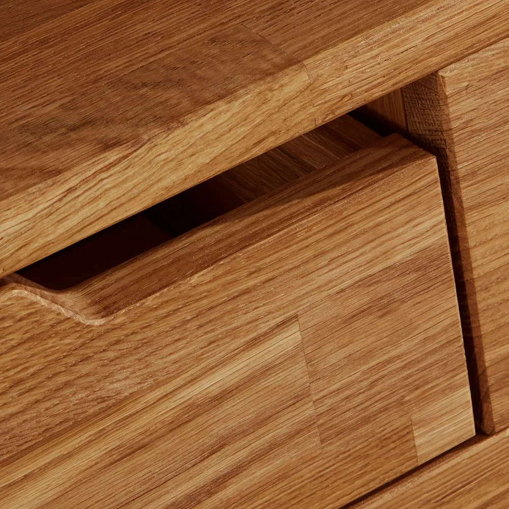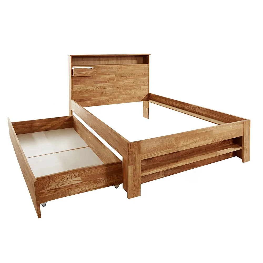 В изголовье и в изножье кровати есть широкие встроенные полки, в изголовье также сделан маленький выдвижной ящик для мелочей. Кроме этого, кровать комплектуется выкатным ящиком для хранения одежды и постельного белья.