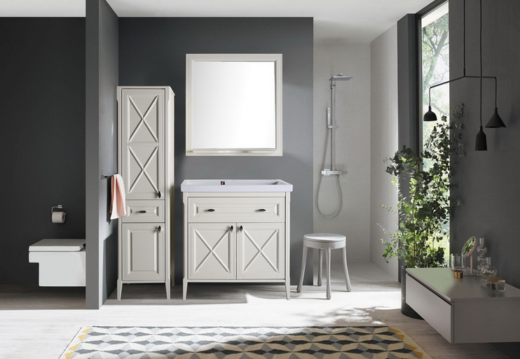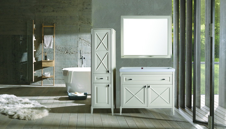 Коллекция мебели “Монте” для ванной комнаты отличается простым, но элегантным дизайном с декорированными фасадами, прямыми ножками и серебристыми матовыми ручками. Для изготовления корпусов используется массив ясеня, а фасады и внутренние элементы изготавливаются из МДФ.