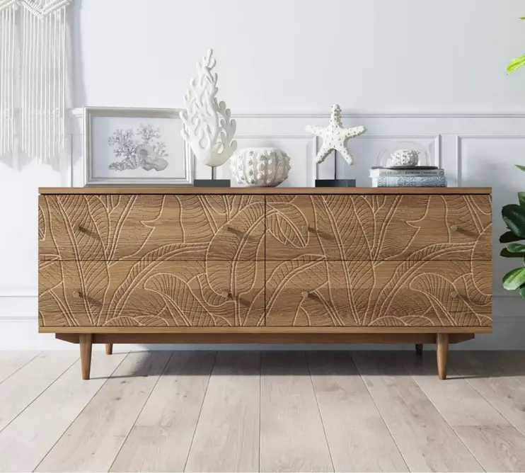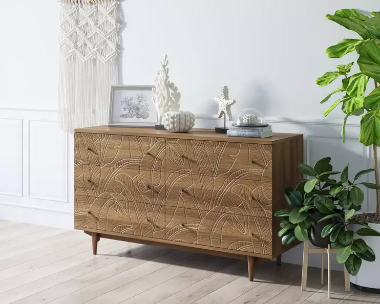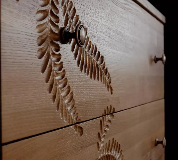 Мебель для гостиной «Бохо» с дизайнерскими фасадами понравится любителям особенных вещей. Эти предметы сразу привлекают внимание и запоминаются. В коллекции представлены комоды с разным количеством ящиков.
