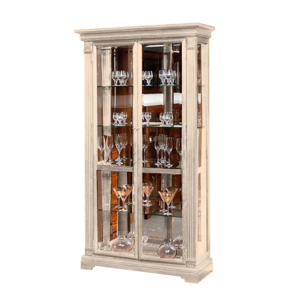 На просторных стеклянных полках можно разместить любимый сервиз, рюмки и бокалы.