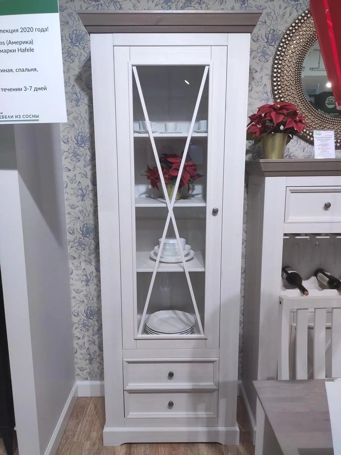 Шкаф Форест для посуды узкий 1-дверный с 2-я ящиками белый воск/серый