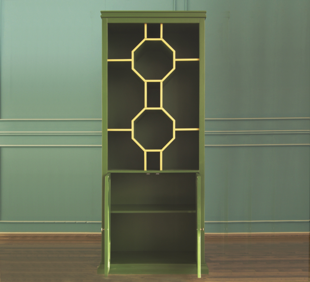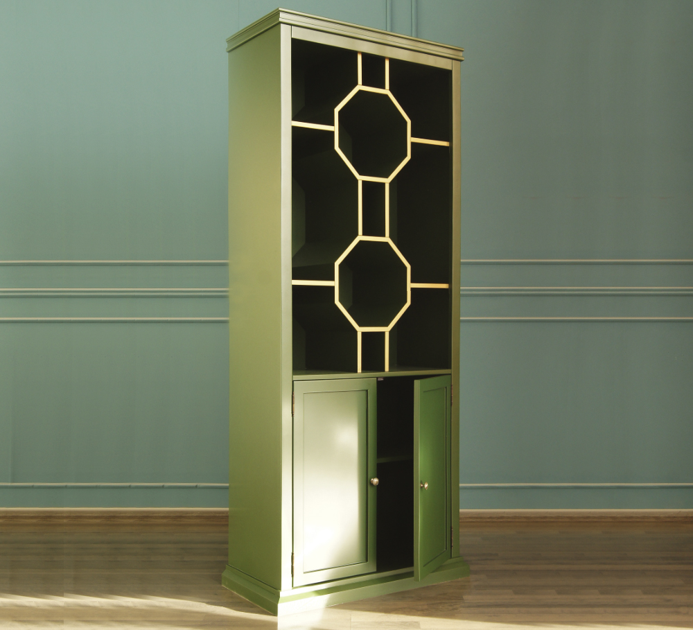 Стеллаж "Emerald" изготавливается из массива березы. Дверки и некоторые вкладки из МДФ. Фурнитура - латунь. Стеллаж покрывается итальянскими лакокрасочными материалами Sayerlack.