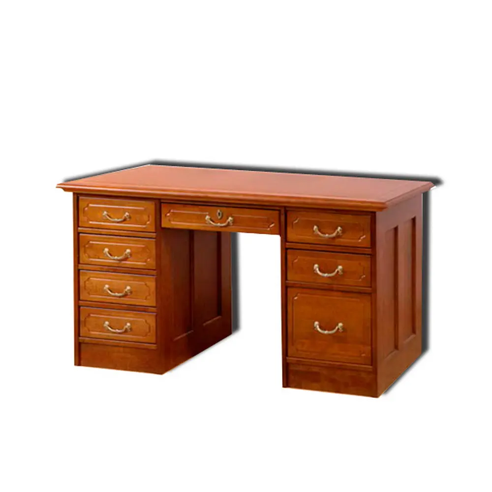 Солидный письменный стол из массива берёзы выглядит респектабельно и красиво, столешница покрыта несколькими слоями лака, через который хорошо виден рисунок натурального дерева, стол отлично впишется в различный интерьер и подойдёт, как под классические, так и под современные обстановки. Размеры стола довольно массивные: ширина 1400 мм, глубина 770 мм, высота 750 мм, фундаментальная столешница. Вместительные выдвижные ящики, размеры места для сидения позволяют расположить солидное и удобное кресло. Стол может использоваться в домашних условиях, а также в кабинетах руководителей. Благодаря своей прочности, изделия из берёзы достаточно долговечны, делаем вывод, что стол вам прослужит долго. Текстура волокон массива березы своей красотой может соперничать с буком и дубом. Древесина – это прочный материал, поэтому стол выдержит высокие нагрузки и не деформируется под их воздействием. Кроме того, если поверхность потеряла привлекательность, её всегда можно отреставрировать и обновить поверхность.