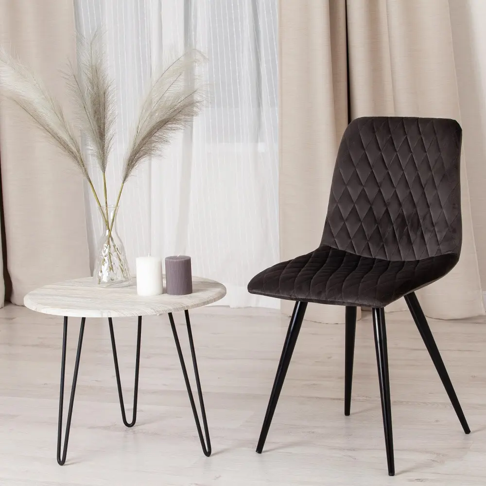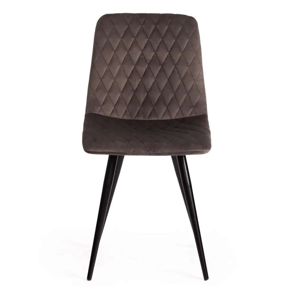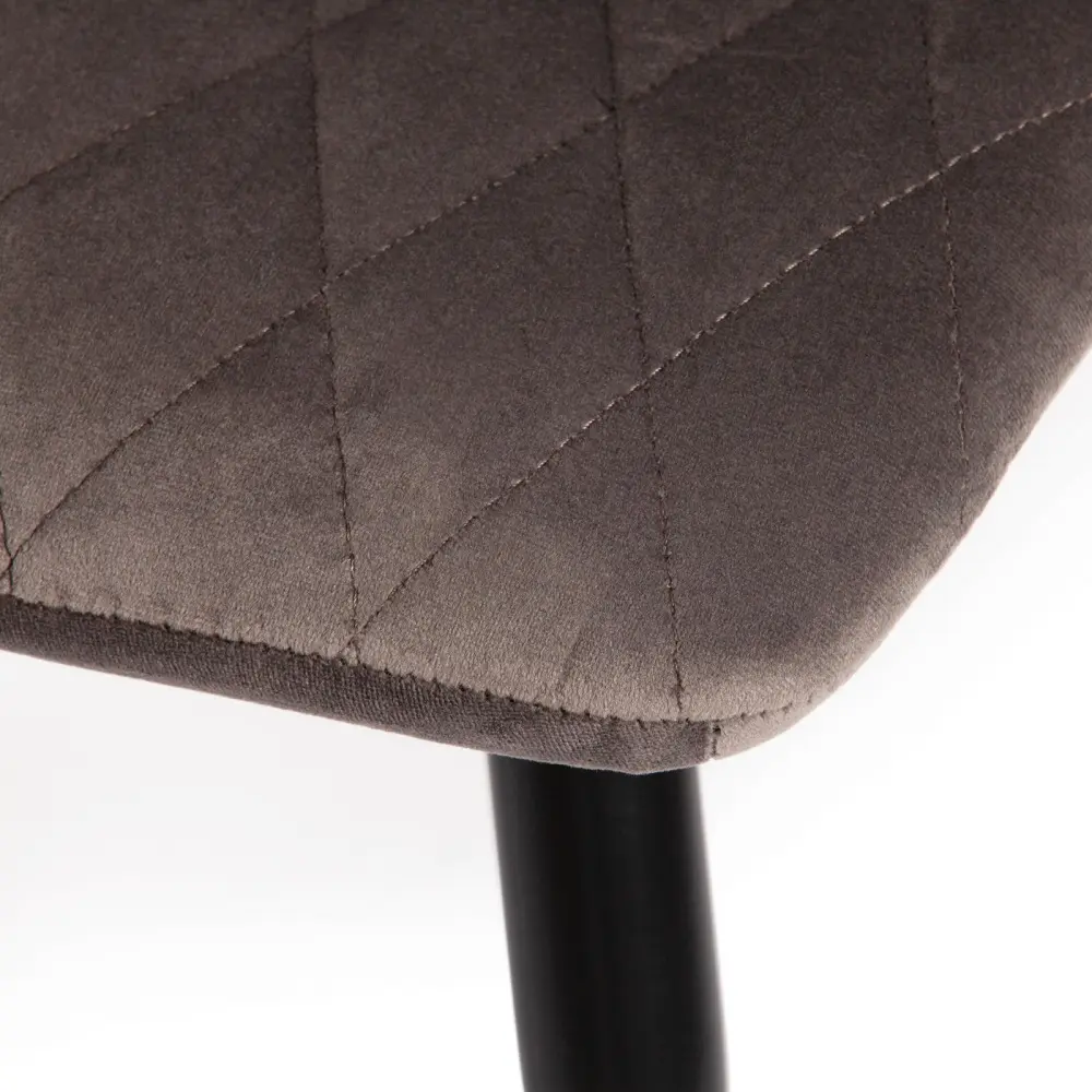 Простая форма, стеганая темно-серая обивка и тонкие металлические ножки черного цвета