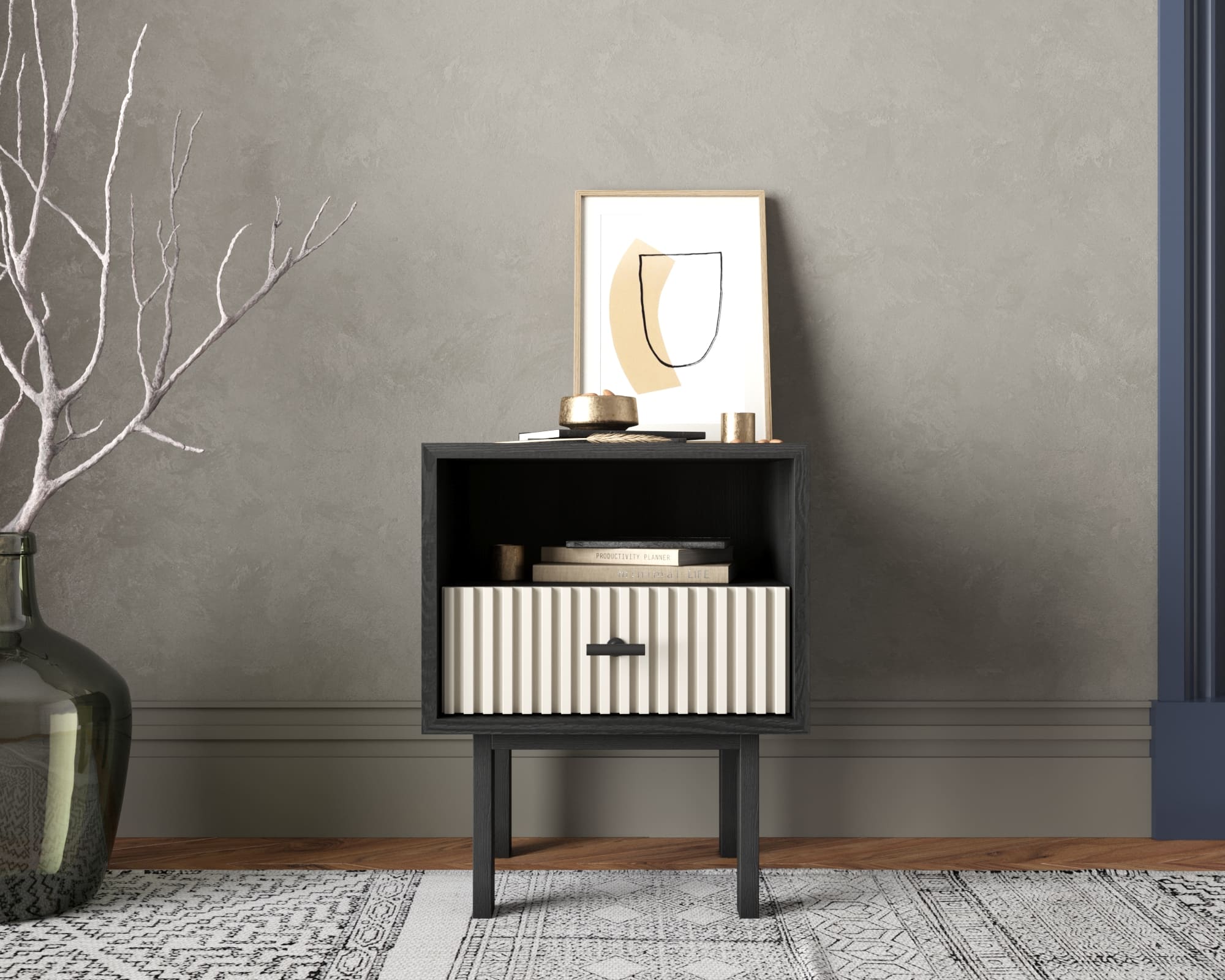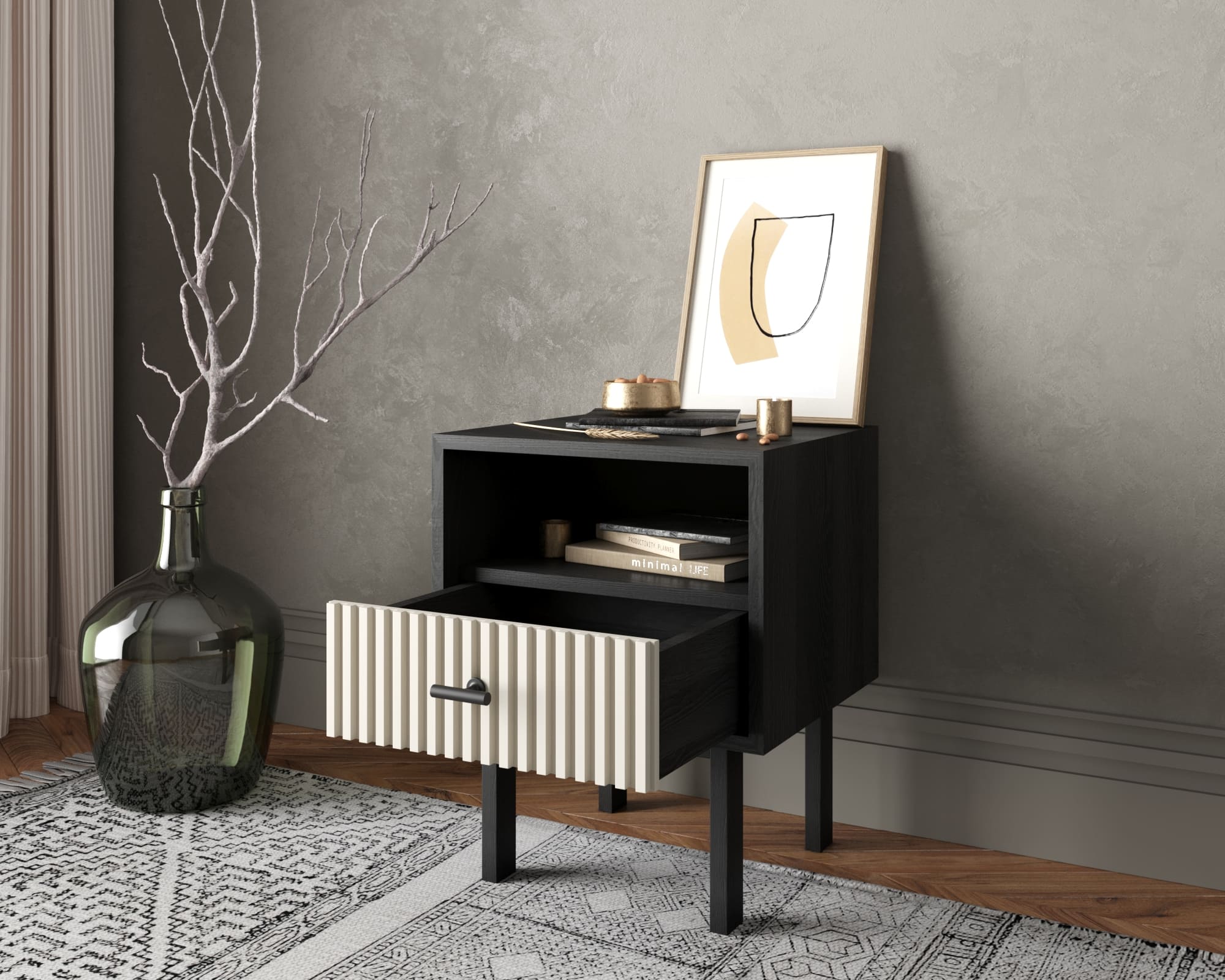 Тумбочка с нижним ящиком "Emerson" арт EM17/milky/L